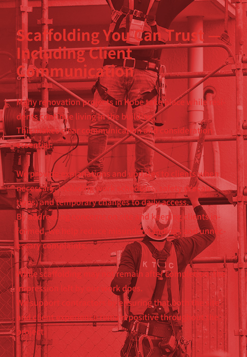 段取りを疎かにせず、常に連携を取りながら進めることで、神戸市の足場工事・改修工事をスムーズに進行させることを大切にしています。